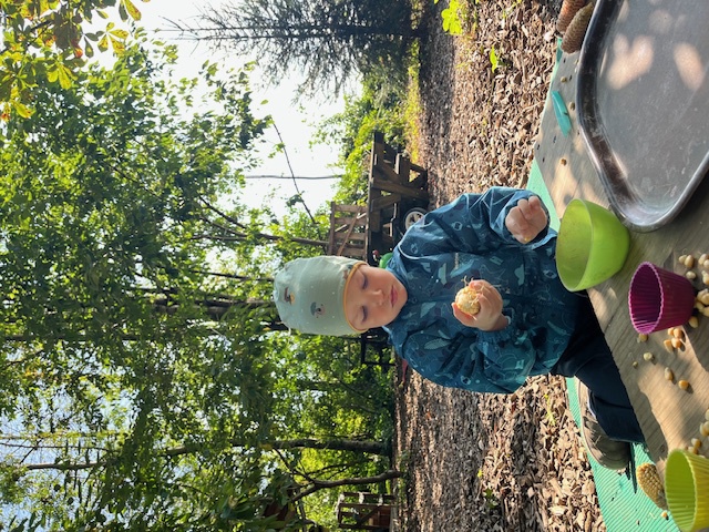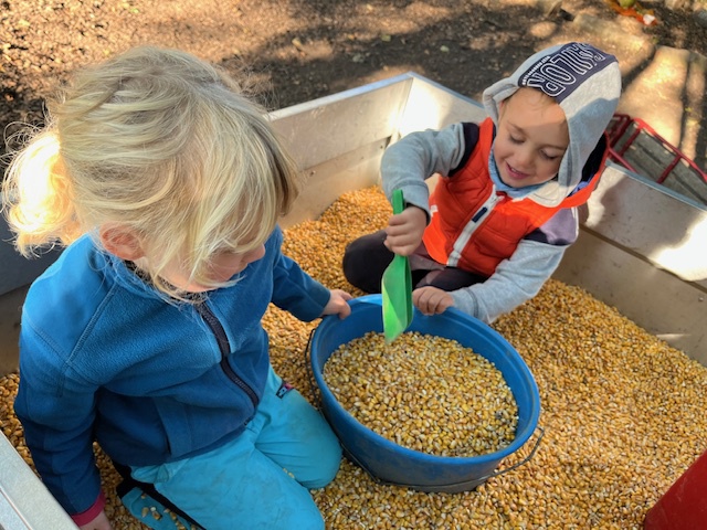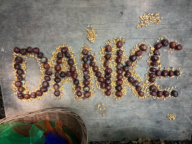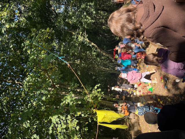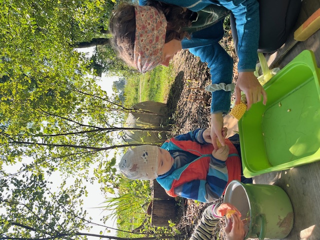 Die Eingewöhnung meistern alle gut, die Gruppen finden sich neu zusammen, erste Waldausflüge werden gemeinsam erlebt, Beziehungen werden aufgebaut, Tagesabläufe sowie Spiele und Lieder werden kennen gelernt und auch das erste Fest: Erntedank, wurde gefeiert.