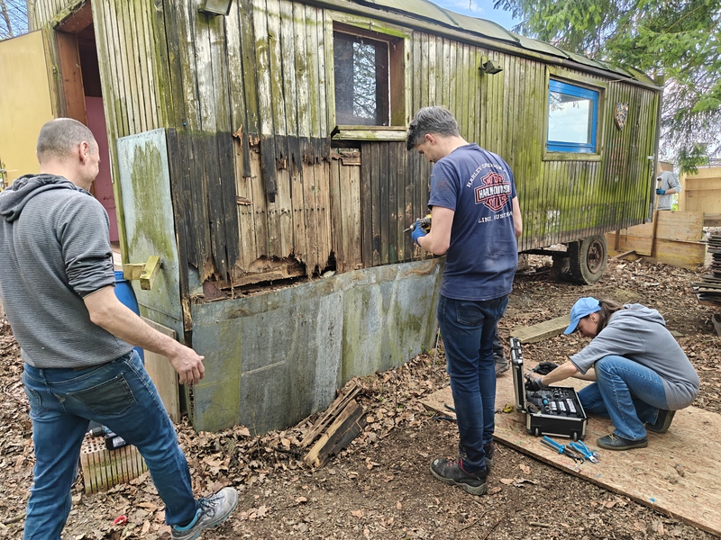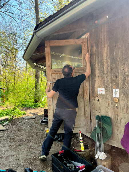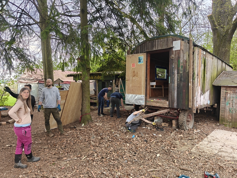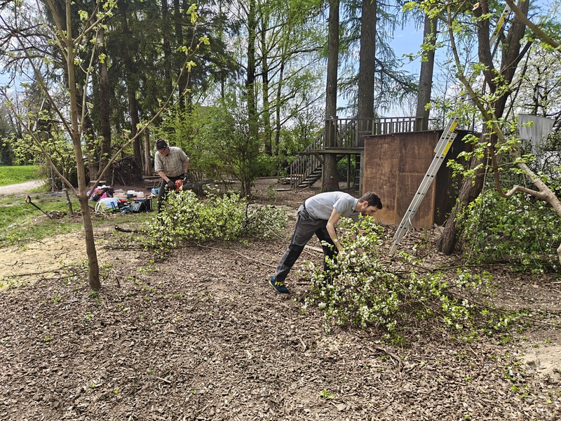 Zwei Tage wurde wurde gearbeitet: Bäume gefällt, Ö-Klo versetzt, Bauwagen Innen- und Außenbauten abmontiert, Bauwagen entfernt, zum ASZ gefahren, Holz geschnitten, Waldschule hergerichtet, Türe der Jurte repariert, Planen geflickt, geputzt, Jause gebracht u.v.m. Ein paar Eindrücke findet ihr in der Fotogalerie: