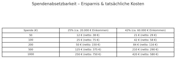 Nur mit diesen Daten kann das Finanzamt Ihre Spende korrekt zuordnen.