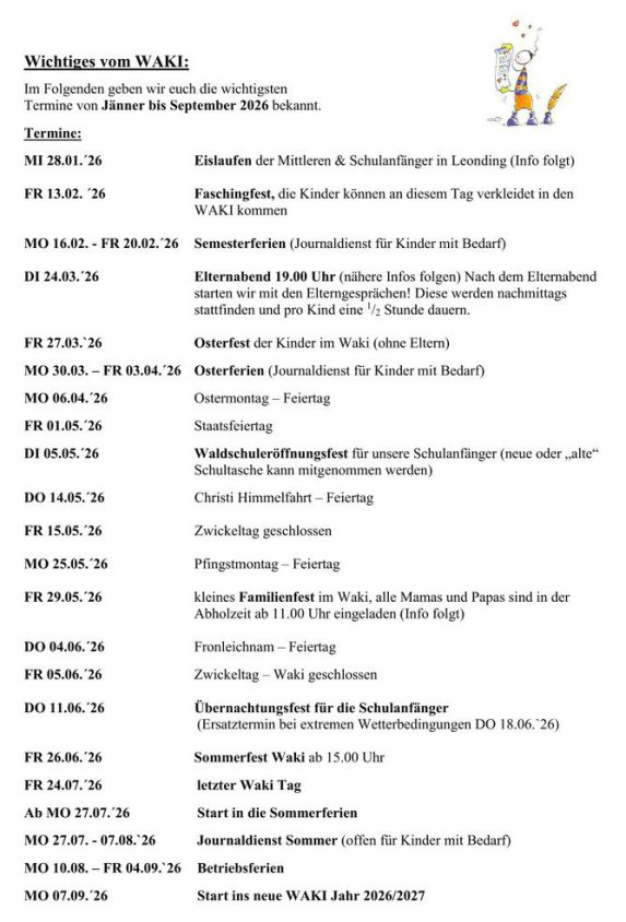 Hier finden sie wichtige Informationen zu den Schließ- bzw. Ferienzeiten sowie Kindergartenterminen.